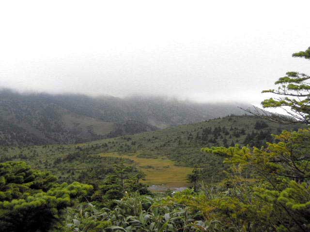 ロープウェイから見える山の南側の風景、アオモリとど松が雪と強い季節風で樹氷(モンスター)に成長します。日本では八甲田と蔵王が有名です。